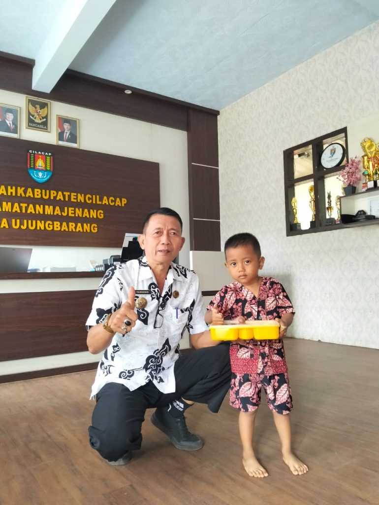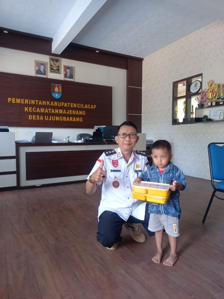 Ujungbarang, Cilacap Normahukum.com: Kepala Desa Ujungbarang, Tarkono, menyerahkan bantuan kepada Fahri, seorang balita yang mengalami stunting. Bantuan diserahkan langsung di Balai Desa Ujungbarang, Kecamatan Majenang, Kabupaten Cilacap, Jawa Tengah. Fahri sendiri merupakan warga RT 02 RW 01 Desa Ujungbarang.