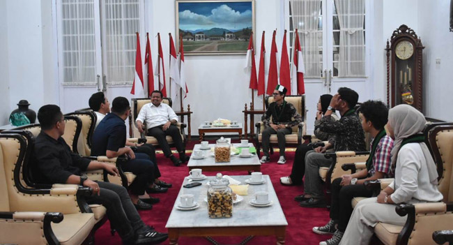 SUMEDANG, NH — Bupati Sumedang, Dony Ahmad Munir menerima audiensi jajaran Himpunan Mahasiswa Islam (HMI) Cabang Jatinangor-Sumedang di Gedung Negara, Jum’at (20/6/2025).