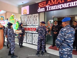 Rombongan TNI AL tiba di Mapolresta Cilacap sekitar pukul 07.20 WIB dengan membawa kue ulang tahun, sebagai bentuk apresiasi dan dukungan terhadap Polri yang tengah memperingati hari jadinya ke-79. Kehadiran mereka disambut langsung oleh Wakapolresta Cilacap, AKBP Rudi Saeful Hadi, S.I.K., didampingi para Pejabat Utama (PJU) Polresta Cilacap.